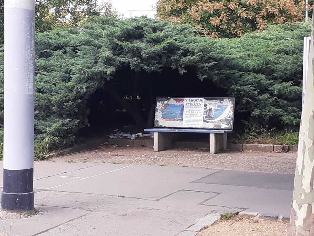 Dobrý den, prosím odklidit hnízdo po bezdomovcích v parku Pražačka z ulice Koněvova u laviček. Děkuji