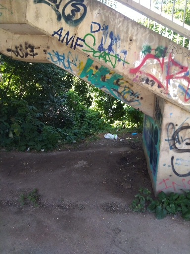 Nepořádek v celém úseku svahu od WC DPP v ulici Na Ohradě až po nástup na most pro pěší u garážového domu Nad Ohradou.