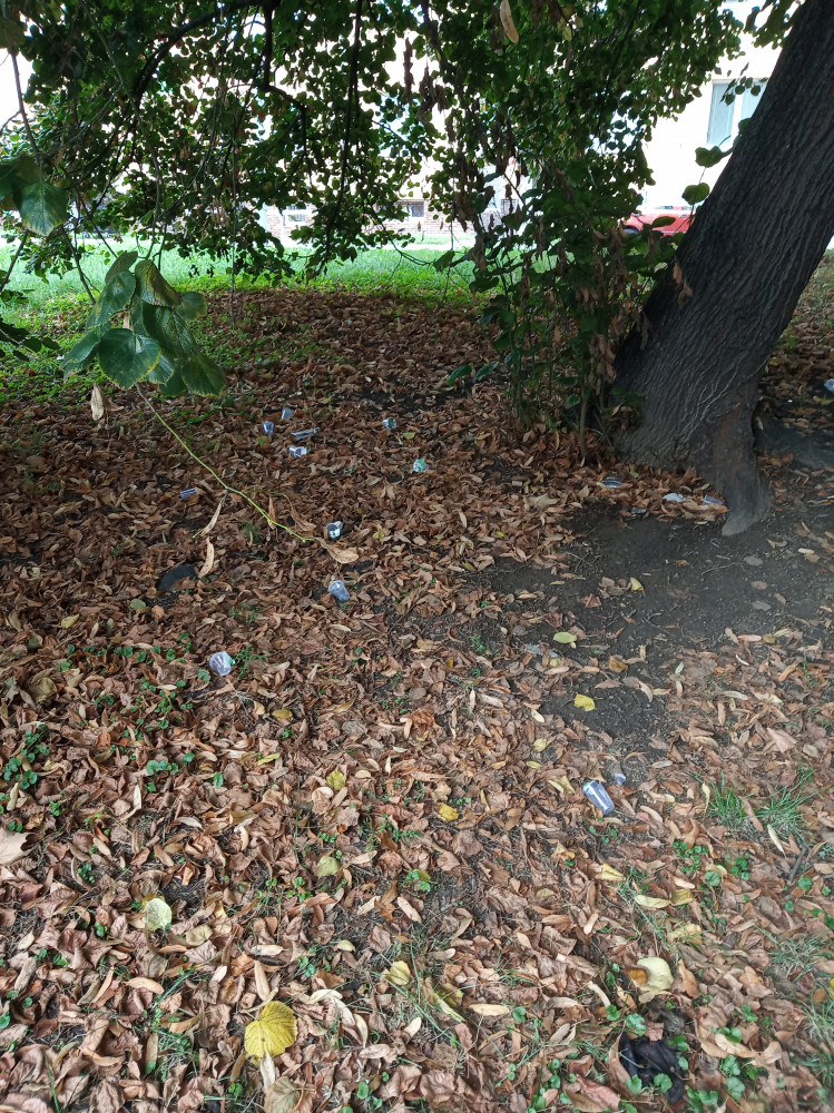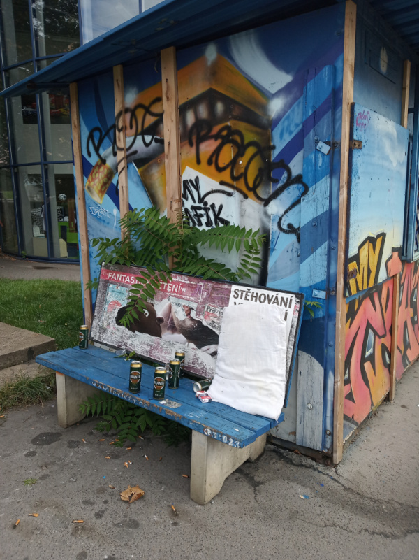 Nepořádek chmelnice, pozůstatek párty bezdomovců, denně...