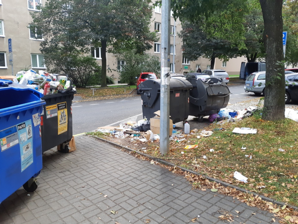 Dobrý den, za pořádek kolem komunálních kontejnerů je odpovědný jejich vlastník, v tomto případě SVJ příslušného domu. Také je jeho povinnost mít kontejnery zabezpečené tak, aby nedocházelo k vyndávání jejich obsahu dalšími osobami. Můžete podat stížnost na MČ (podatelnu), a to adresně na konkrétní SVJ (či majitele) daného domu (popelnic), kteří budou následně vyzváni k nápravě a při opakovaném problému budou pokutováni... Každopádně firma AVE kontejnery vyveze v pravidelném termínu....MČ Praha 3