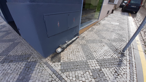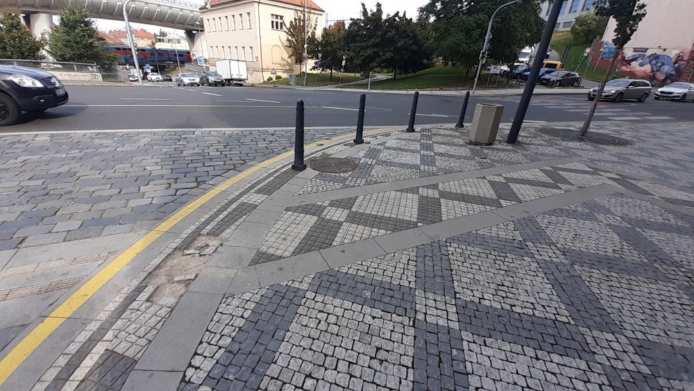 Sloupek vyvrácený na chodníku.