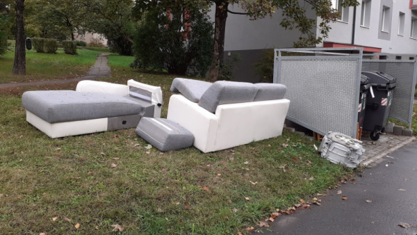 sedacka a zbytek pracky mezi domy Bukova 5 a 7