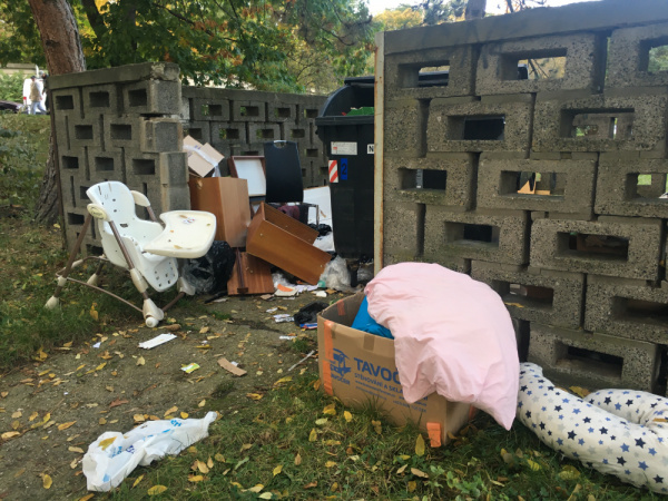 Vznikla nová skládka v prostoru kontejnerového stání. Postupně se rozšiřuje. Prosím o odklízení.