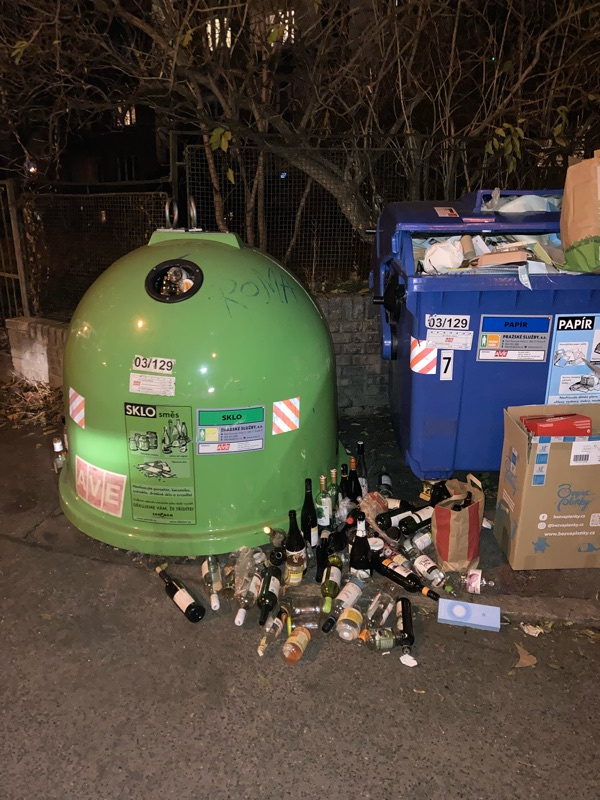 Nepořádek kolem kontejnerů se sklem, děkujeme moc!