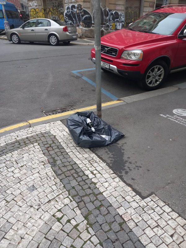 opěr se nam na rohu ulic Víta Nejdelého 11 a Bořivojovi válí na zemi cerný pytel.
