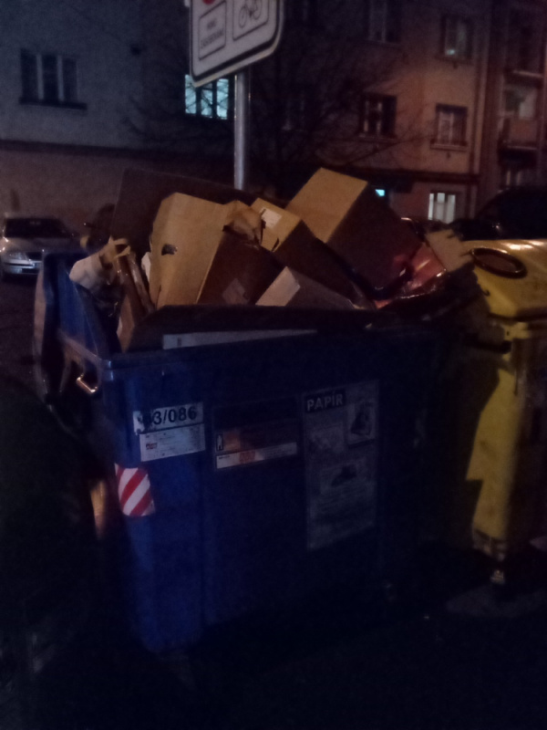 Dobrý den, děkujeme za Váš podnět. Vyveze firma AVE v pravidelném termínu. Pavel, Čistá Trojka