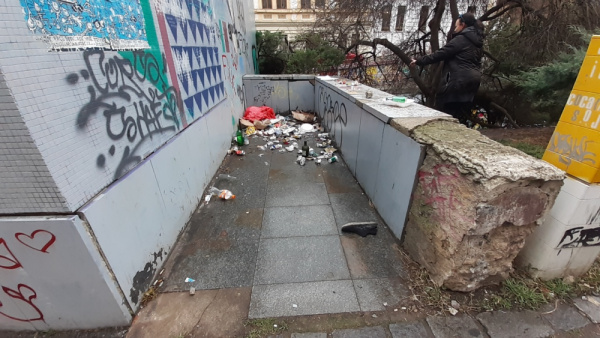 nepořádek - vysypana popelnice na Tachovskem náměstí za domeckem