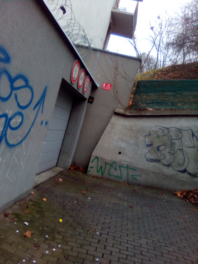 U vjezdu do garazi na konci Českobratrské, u krytu CO