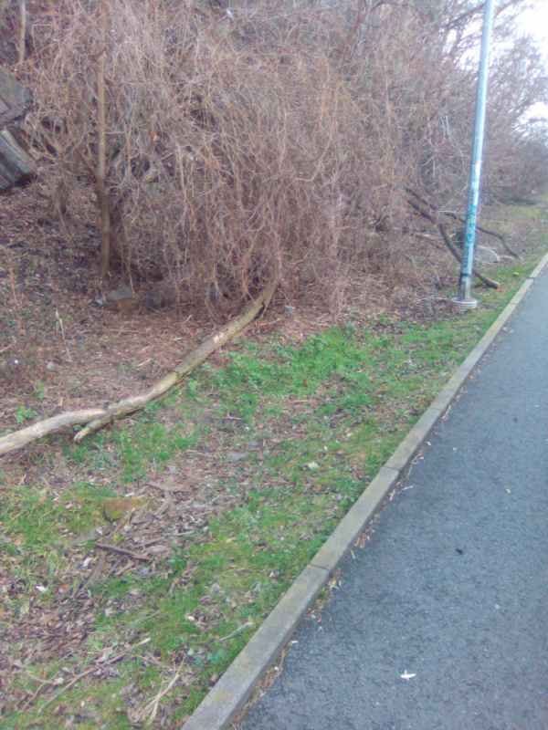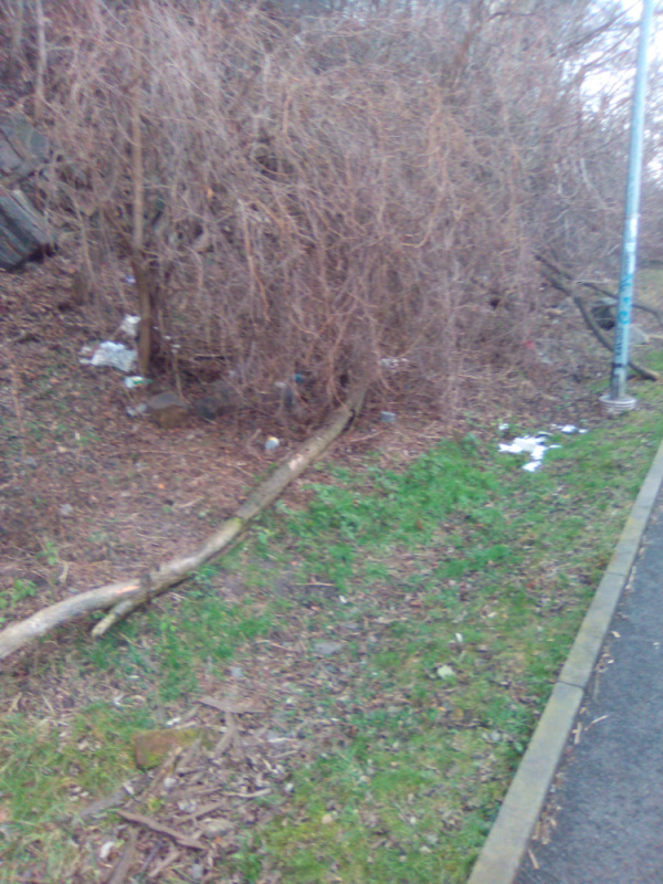 Nepořádek nad cyklostezkou, u sloupu veřejného osvětlení 304061 (a nad ním ve svahu). Ale binec je tam všude okolo...