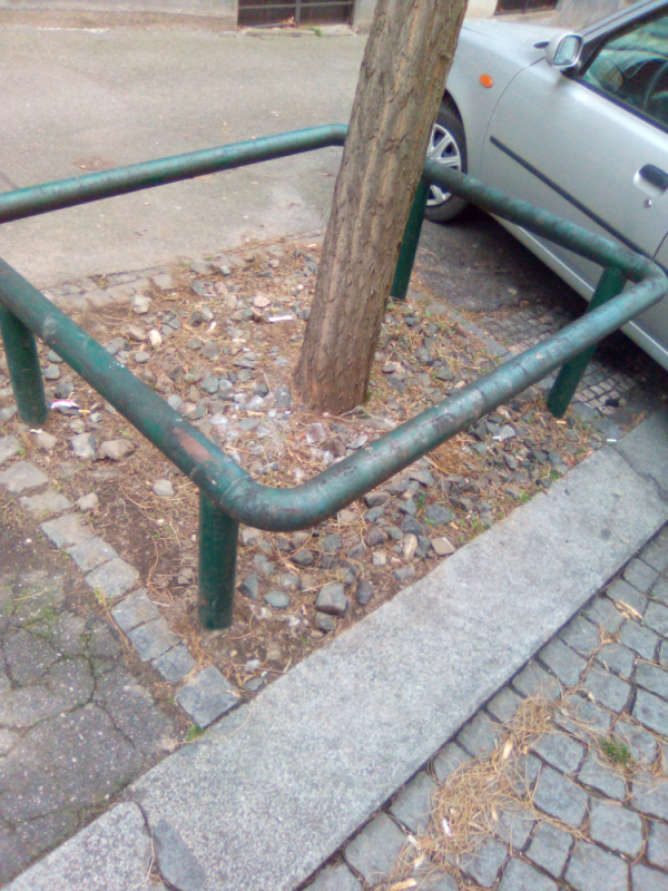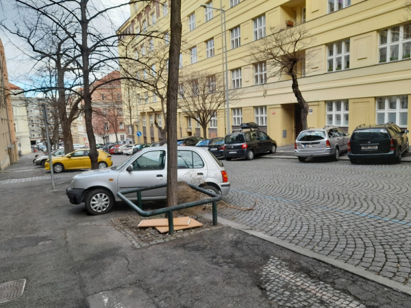 drevene desky v rabatku v Beranová ulici , proti číslu 24