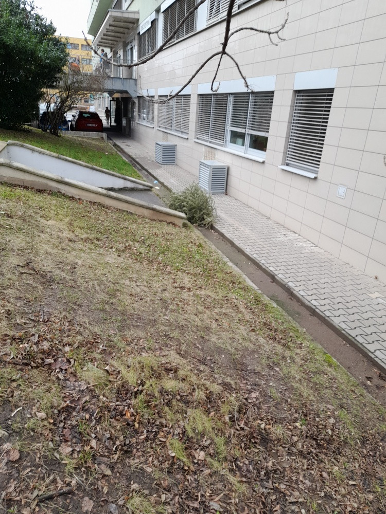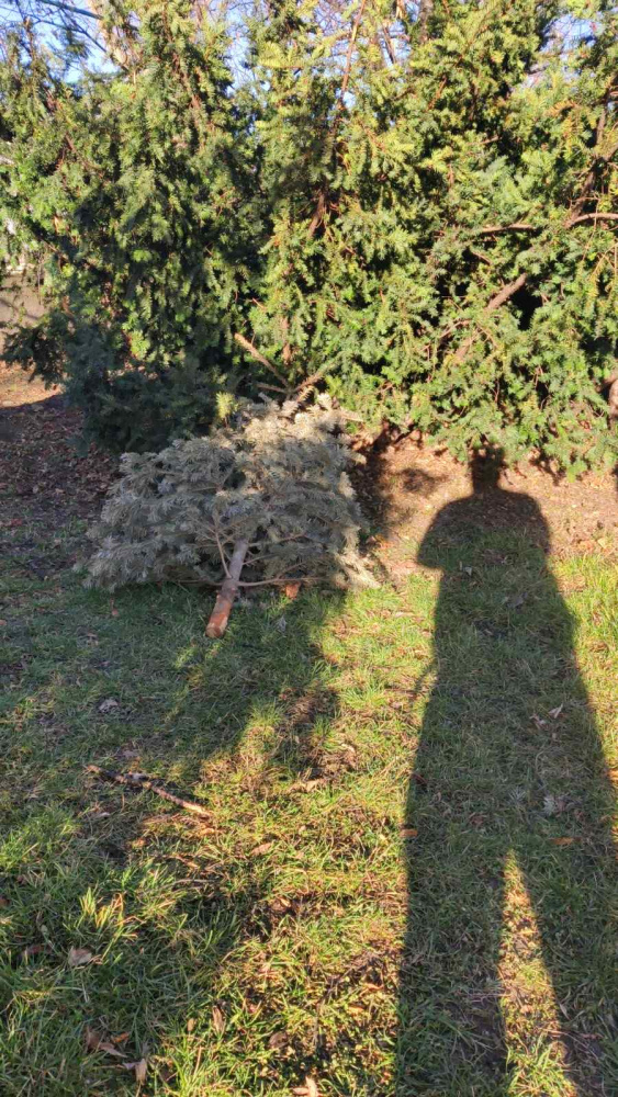 vánoční stromky u OOŽP pod okny, pod schody zase kartony