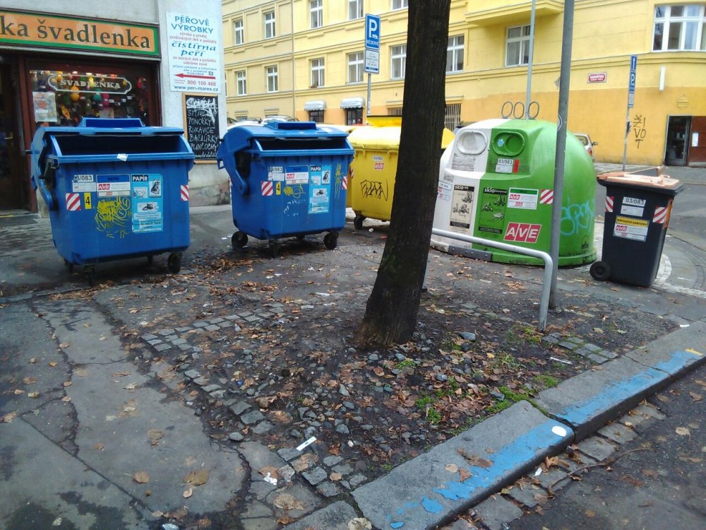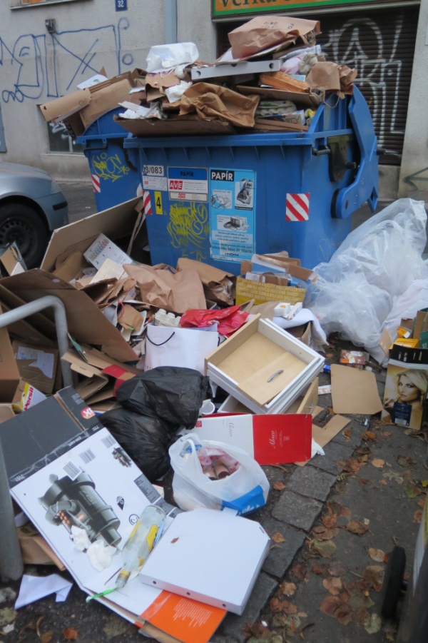 Neskutečné hromady kolem kontejneru, ani se mi to nevešlo do záběru.