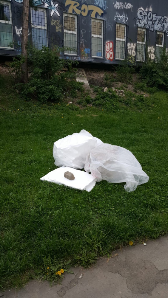 hromada něčeho na Radosti. Chtělo by to rychle odvést, než to rozhrabaji bezdomovci