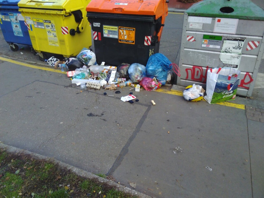 Mohu poslat další fotografie přeplněných kontejnerů a bordelu kolem nich, ale přijde mi to už trochu zbytečné (ty obrázky jsou kupodivu stále stejné). Nicméně na vyžádání zašlu, už jich mám pěkný archiv, poslední z minulého týdne.