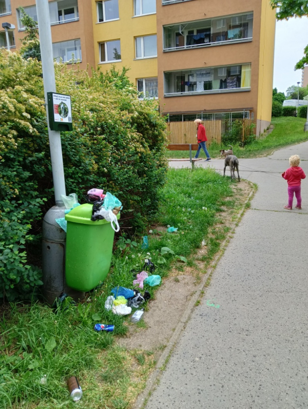 nevysypany koš již z minulého týdne. koš je hodně využívaný, ale jeho vysypávání často vázne