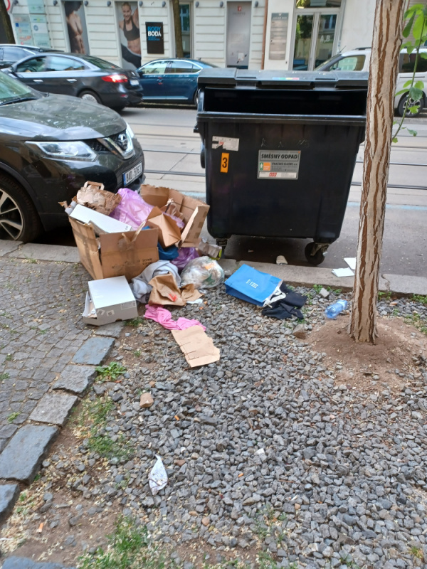 Dobrý den potřebovala bych nahlásit nepořádek u kontejneru v Korunní ulici 1779/115. Nepořádek zde leži už několikátý den, rozšiřuje se a zasahuje i do vozovky. Přílohu zasílám fotodokumentaci. Předem děkuji za vyřízení a hezký den, Irena Cemusova