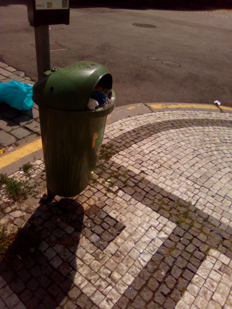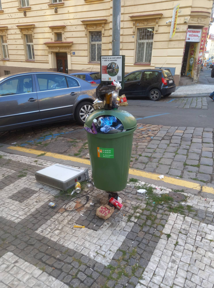 Nepořadek kolem odpadkového koše, prosím o úklid.
