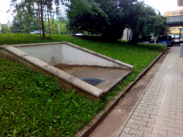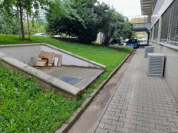 krabice a kartony okolo polikliniky na Olsanske ul.