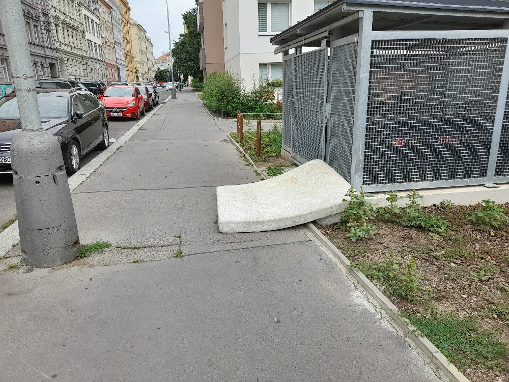 matrace u kleci na kontejnery na rohu Ondrickovi a Bořivojovi ulice