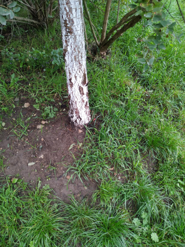 Je tam stále ( viz foto). Omlouvám se nejedná se o břízu, strom má bílé nabarvený kmen, vedle cesty dolů z parku.