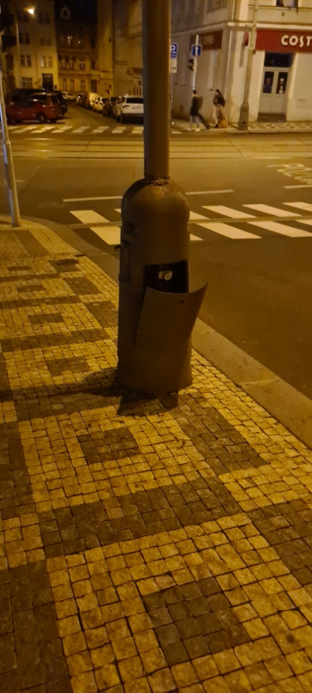 odpadnutý kryt u lampy. rok ulice Krásova a Seifertova