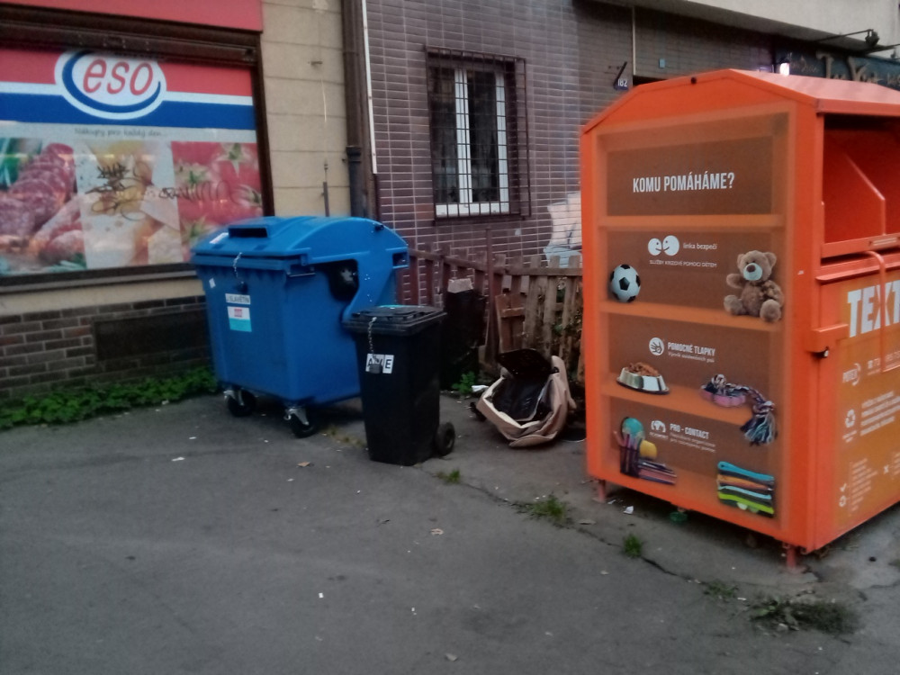 Dobrý den, děkujeme za Váš podnět. U tříděných jsme poklidili. U komunálu je to záležitost majitele domu či SVJ. Pavel, Čistá Trojka