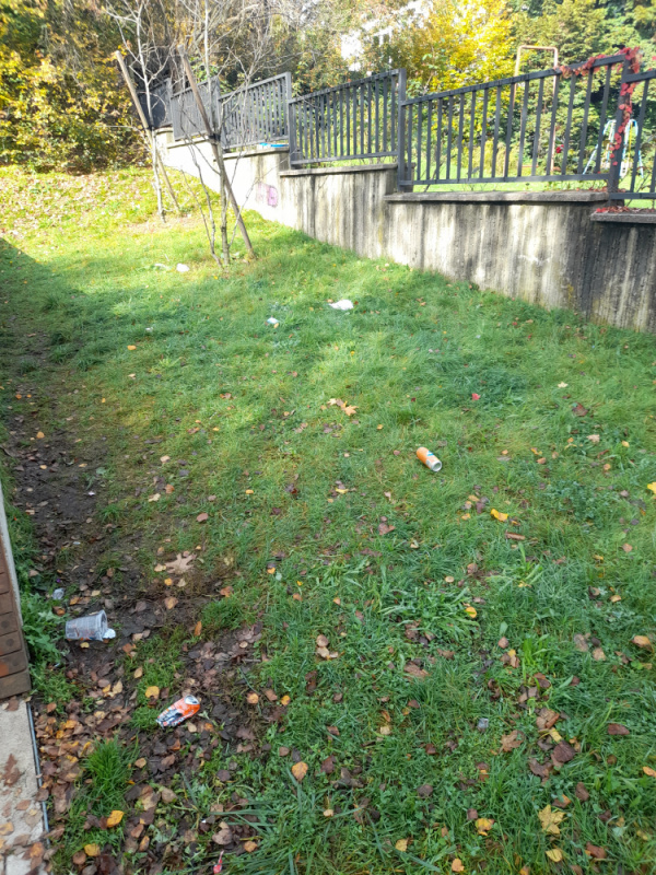 Odpadky na dětském hřišti a těsně kolem, lahve, sáčky, slupky od mandarinky. Bohužel mi nefunguje foťák, ale jistě je najdete i bez fotografie. Jedná se o park Kněžská luka.