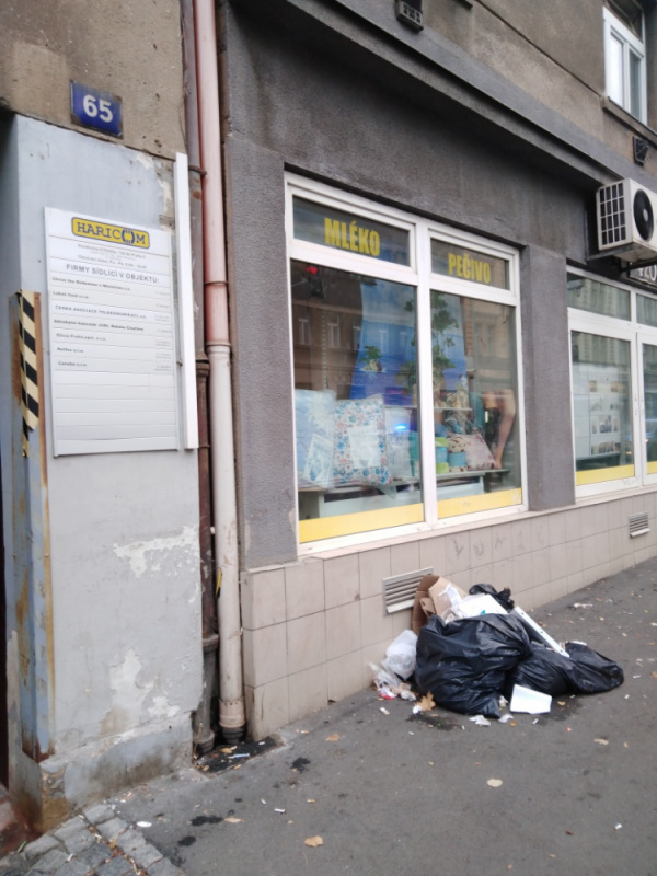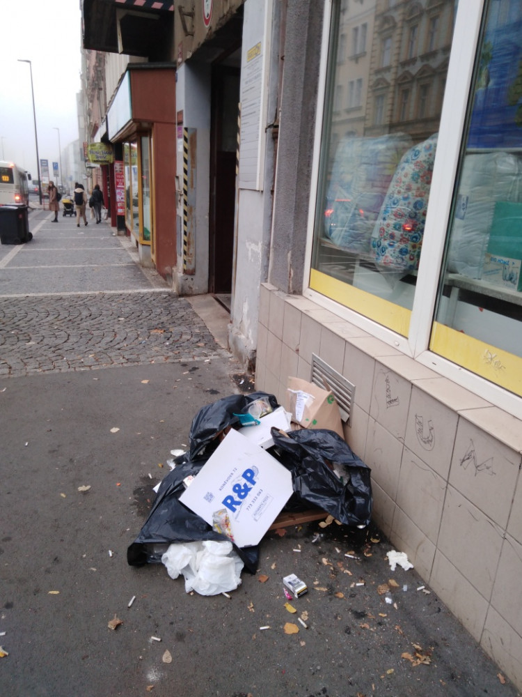 Pytle s odpadem na chodníku