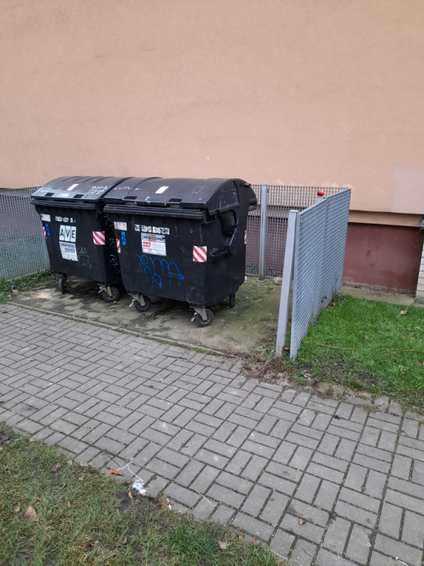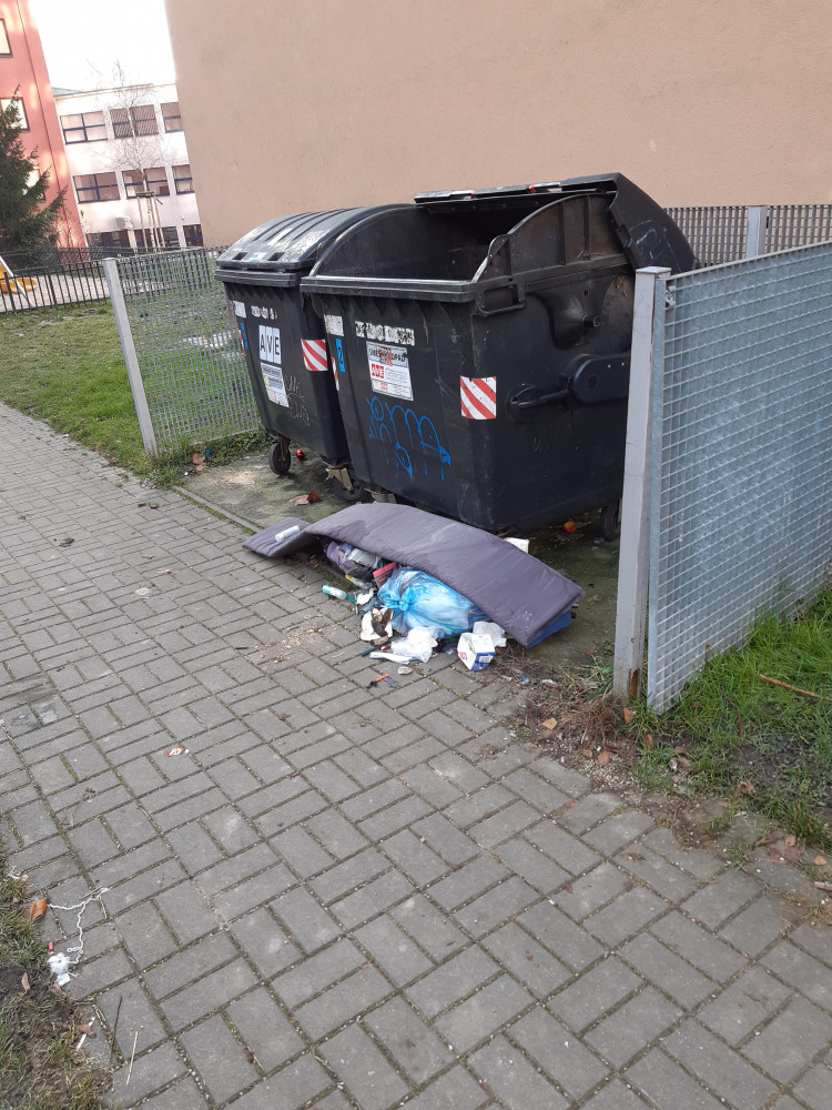 Nepořádek u popelnic u domu Na Vrcholu 8