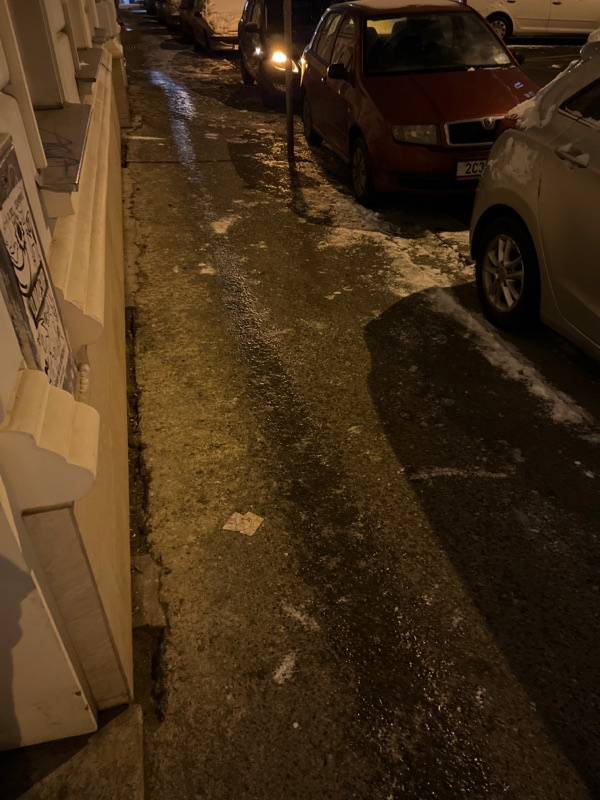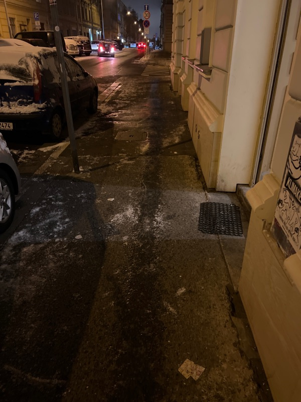 Chodník není udržovaný, je na něm náledí. Nebezpečí úrazu zvláště pro starší lidi, kterých je zde v ulici Vlkova mnoho! Prosím o nápravu. Minulý týden o víkendu o půl třetí ráno tady jezdili technické služby s malým autem a kartáčovali chodníky přesto, že na nich nic nebylo - naprosto zbytečně a dělali pouze hluk!!! Video mohu zaslat, mám jej k dispozici!