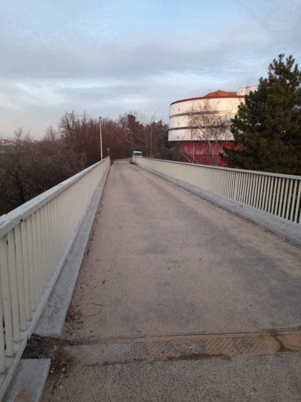 Skleněné lahve a zbytky pyrotechniky na celém mostě pro pěší na Ohradě. nejde nepřehlédnout i bez fotografie.