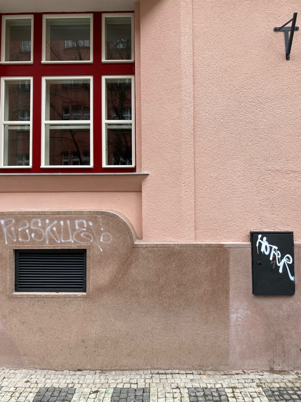 Posprejovaná nová fasáda a kryt elektřiny - Ševčíkova 7