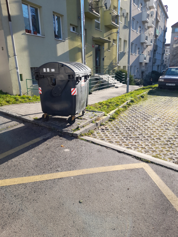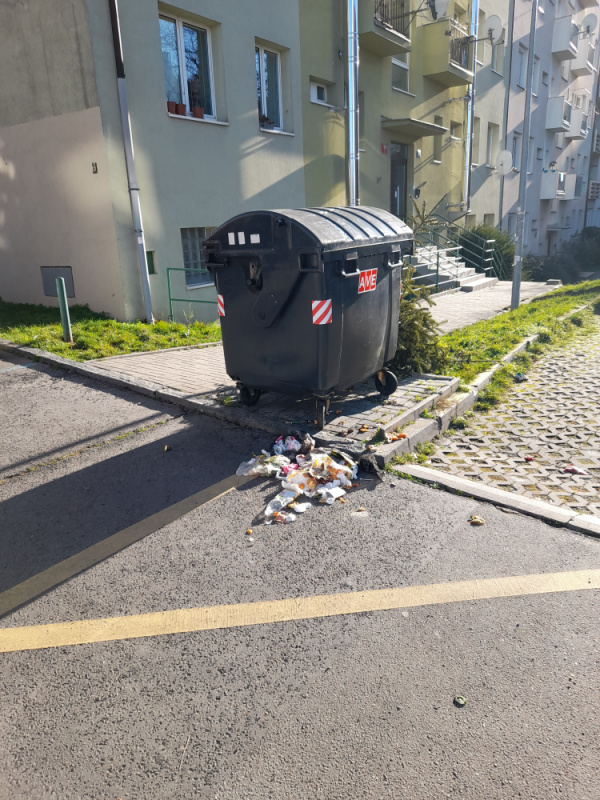 rozsypané odpadky kolem kontejneru, Koněvova 1191/109