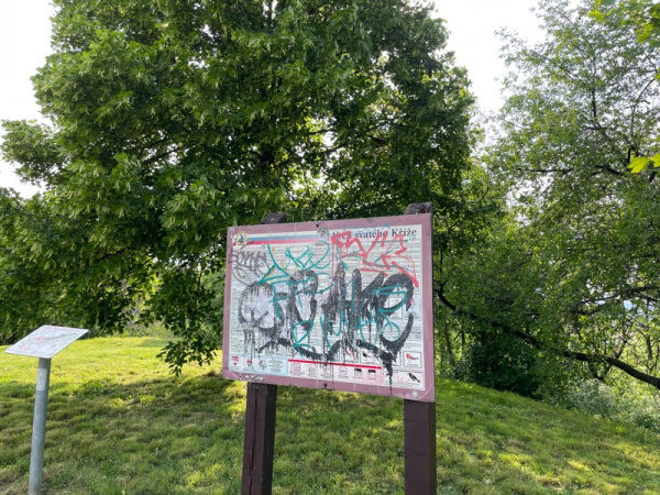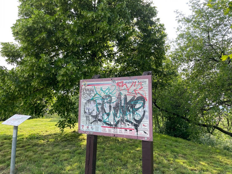 Nešlo by prosím udělat něco s touto cedulí? Buď opravit nebo dát pryč, stejně je to už nečitelné. Totéž s ostatními cedulemi na Parukářce, ale tato je nejhorší.