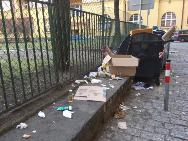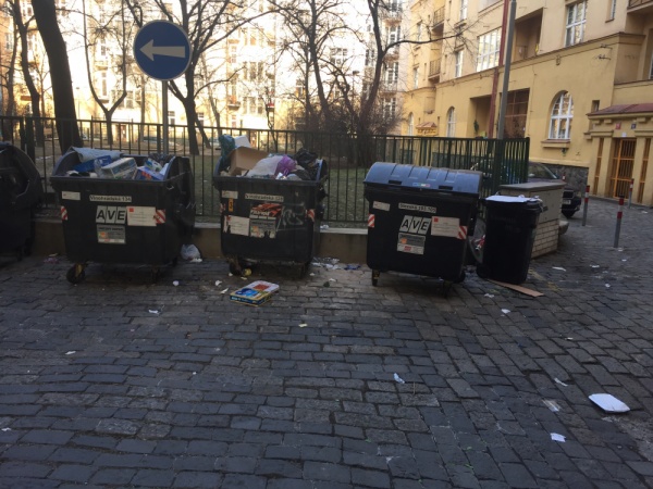 Neporadek kolem popelnic. vsude vysypane:-(