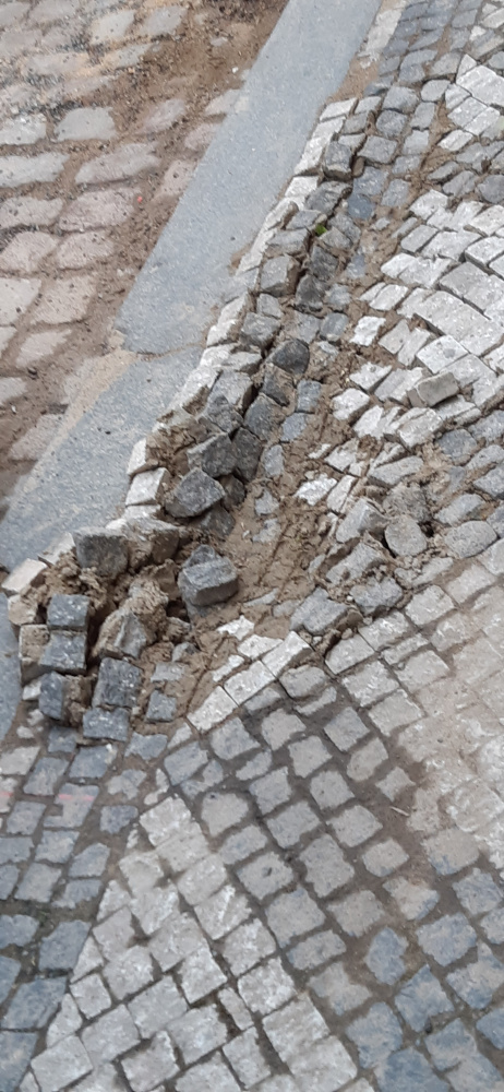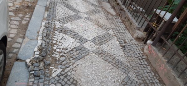 Next to Dalimilova 11 sidewalk is very bad repaired after work from the gas company, plyn.