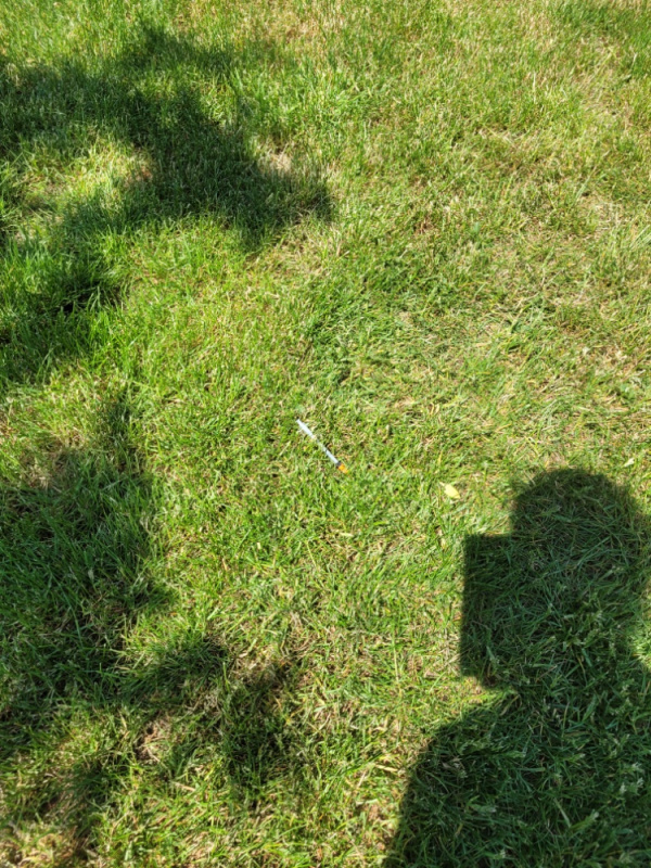 Injekcní strikacka na travniku. U pruduchu metra, jak byvaji trhy.