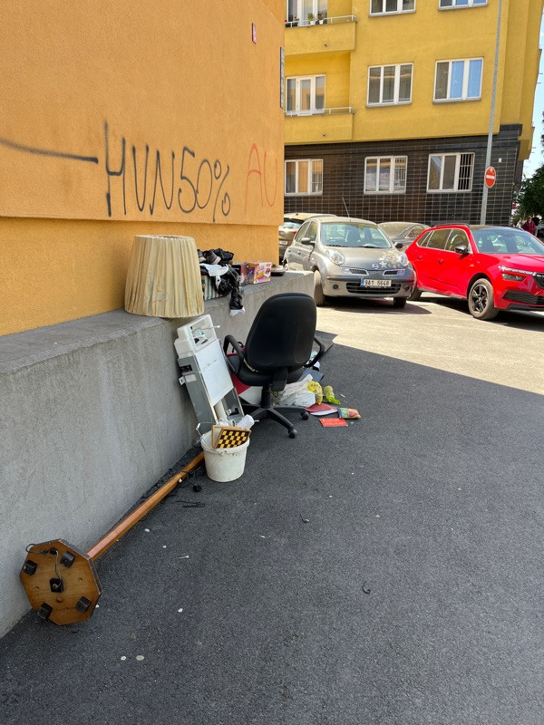 Nejspíš hádka v domácnosti a plno věcí skončilo na chodníku pod okny. Chudak ten, co bych vyhozen..