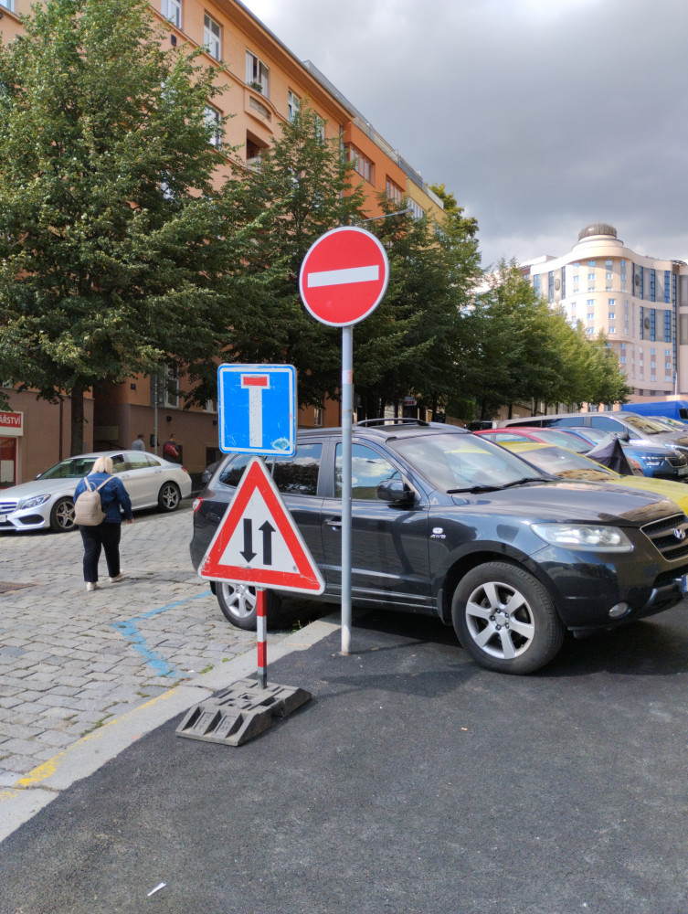 Zapomenutá dopravní značka v ulici po dělníkům.