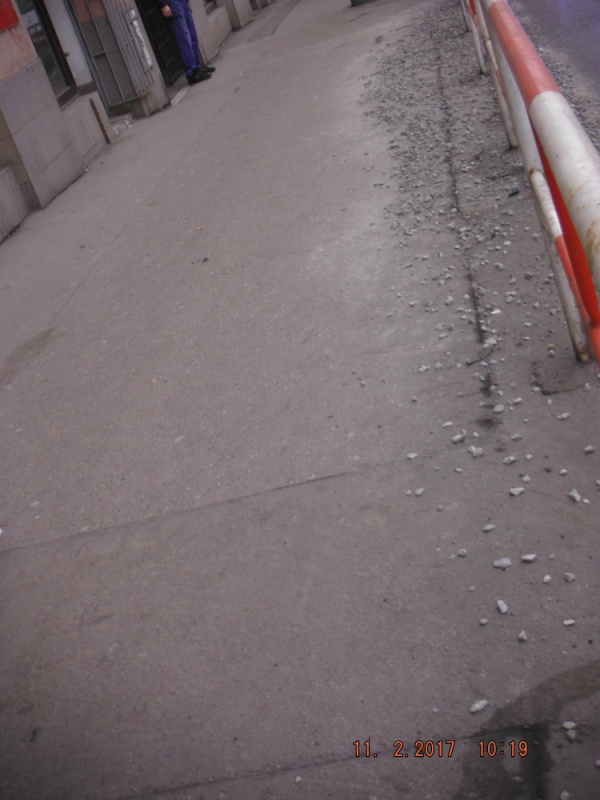tento podnět je předaný TSK. Jedná se o ztvrdlý nacákaný beton s kamínky. Jednoduše odstranit nelze.