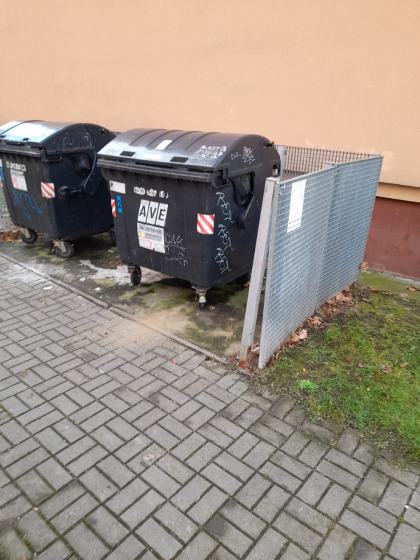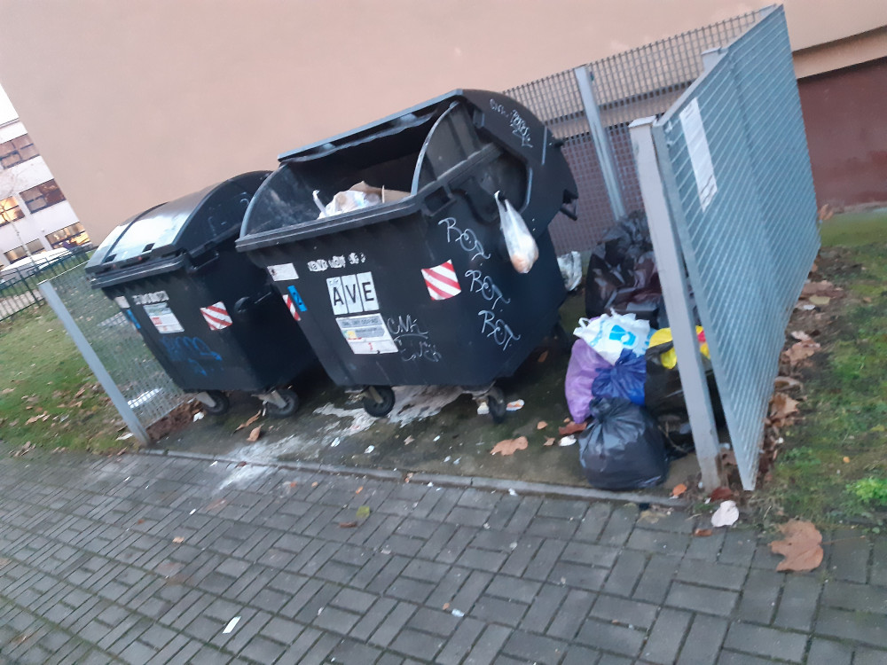Nepořádek u popelnic u domu Na Vrcholu 8