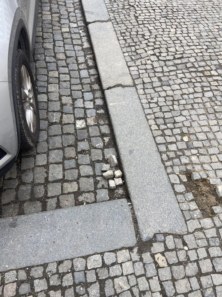 Chodnikove kostky v ulici.., roh Cajkovskeho x Seifertova
