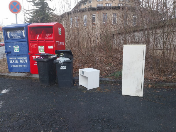 Na Balkáně 76 - u trideneho odpadu lednice a skříňka