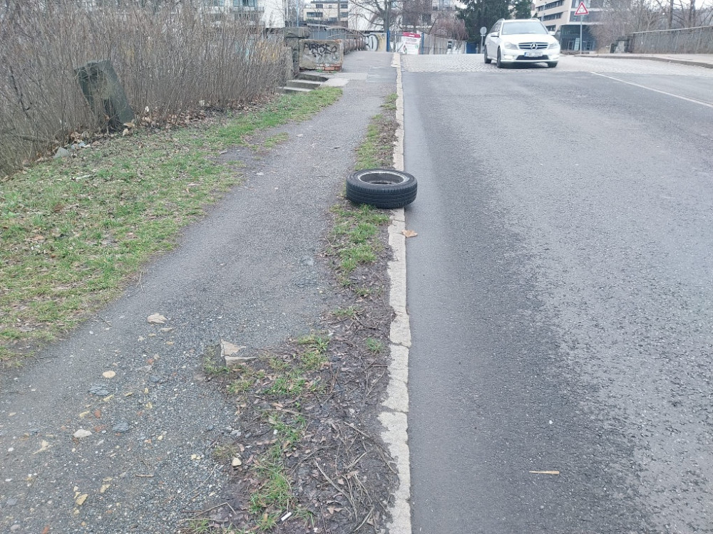 prekážejici pneumatika v ulici U Nákladové nádraží