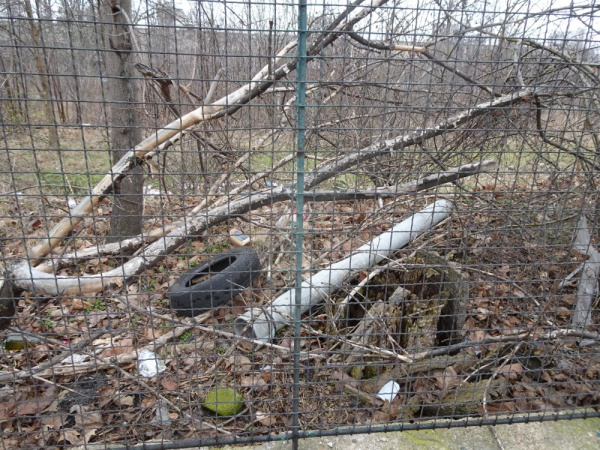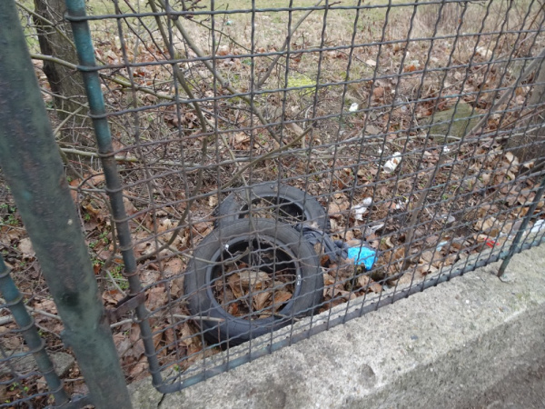 za plot nakladoveho nadrazi nekdo vyhazel pneumatiky, trubky (nevim, jestli nejsou s azbestem). Je to za plotem, at to majitel pozemku uklidi.