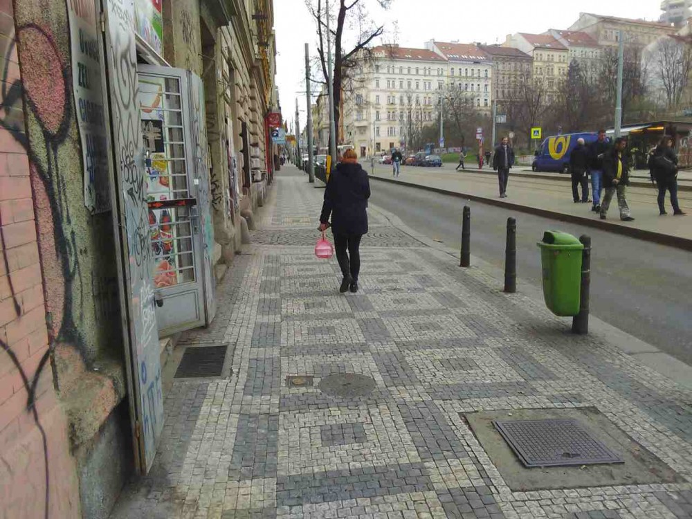 Skleněné střepy na chodníku a ve vozovce: Seifertova 43-51