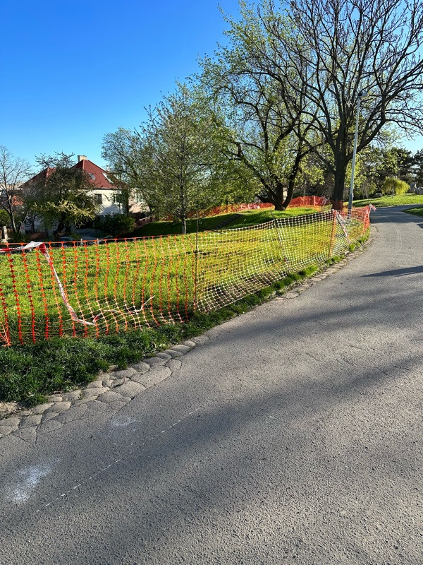 Po rekonstrukci zůstává stále oploceno. Avizovaný termín sundání 11/2023