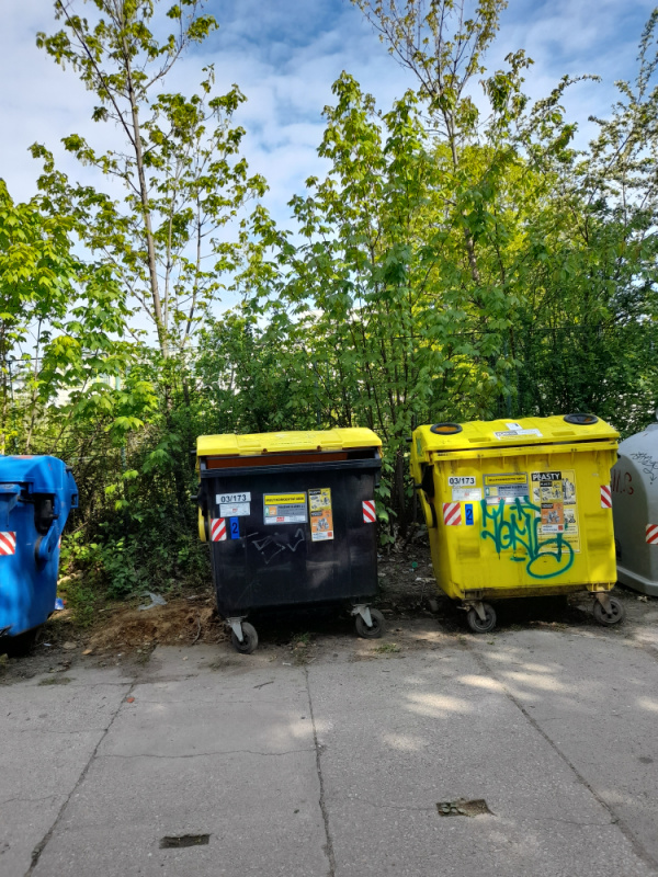 U kontejenru na trideny odpad v ulici na Trebesine (u tenisovych kurtu). jsou vedle popelnice na plast vyhozeny 3 pytle smesneho, odpadu. Prosim o uklid.