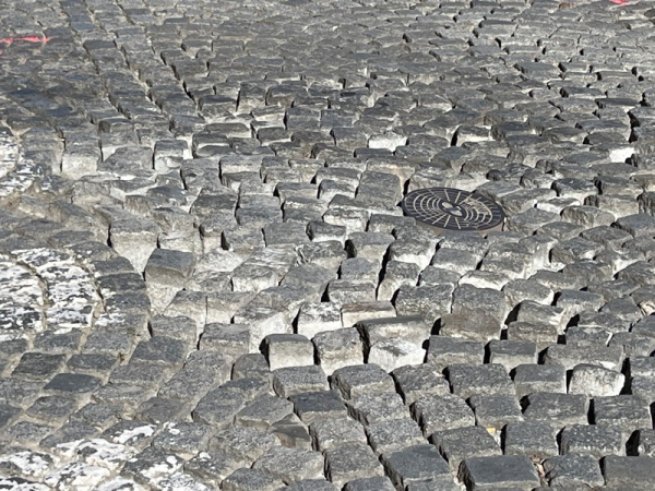 Poškozená dlažba. Jesenioa - Zelenky Hajského.