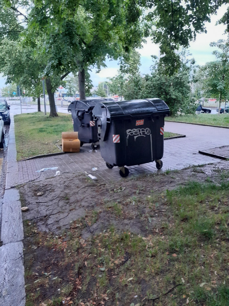 Dobrý den, nějaký idiot vyházel odpad z kontejneru, je to rozfoukáno větrem po okolí, leží tam i nějaká krabice. Děkuji za úklid.